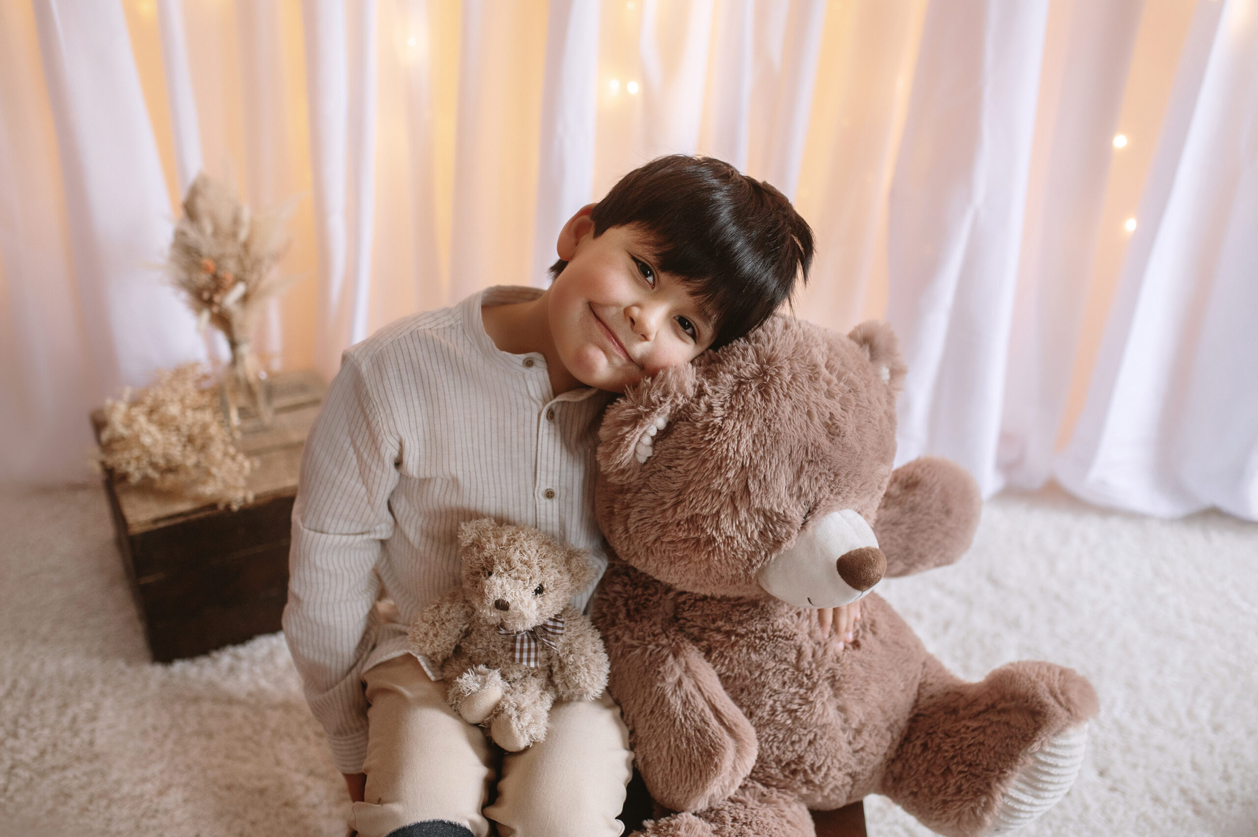 Au studio, plusieurs univers sont possibles selon vos envies. Vous pouvez choisir un décor épuré et intemporel, un décor plus travaillé et artistique, ou encore une mise en scène en lumière naturelle pour des images douces et lumineuses.